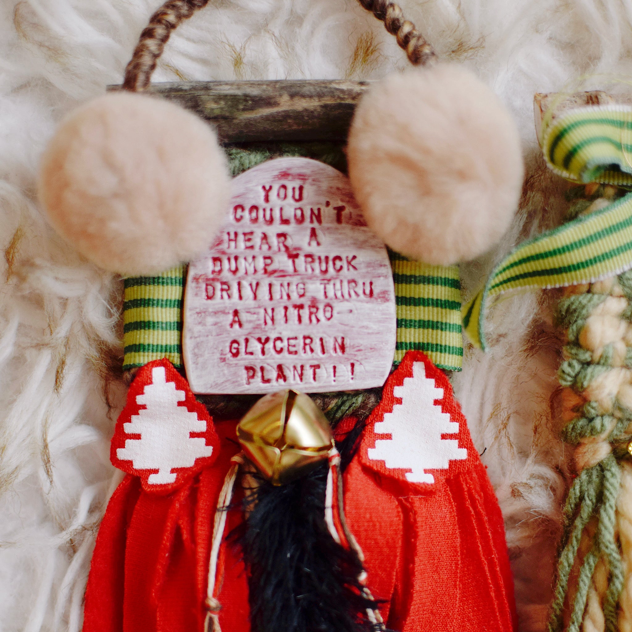 CHRISTMAS VACATION - Red, so many shades of green, tan, ivory, white, black, brown, gold, silver, various stripes and jingle bells. Beads + sequins and clay cut outs that feature so many infamous quotes from such a great movie.