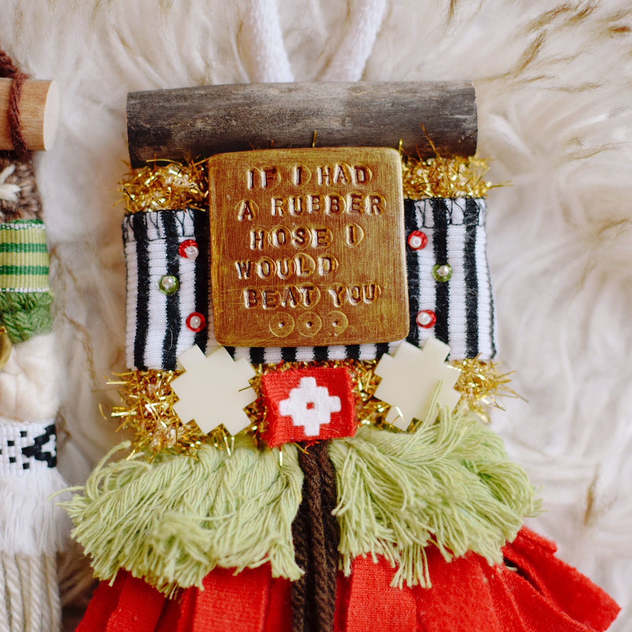 CHRISTMAS VACATION - Red, so many shades of green, tan, ivory, white, black, brown, gold, silver, various stripes and jingle bells. Beads + sequins and clay cut outs that feature so many infamous quotes from such a great movie.