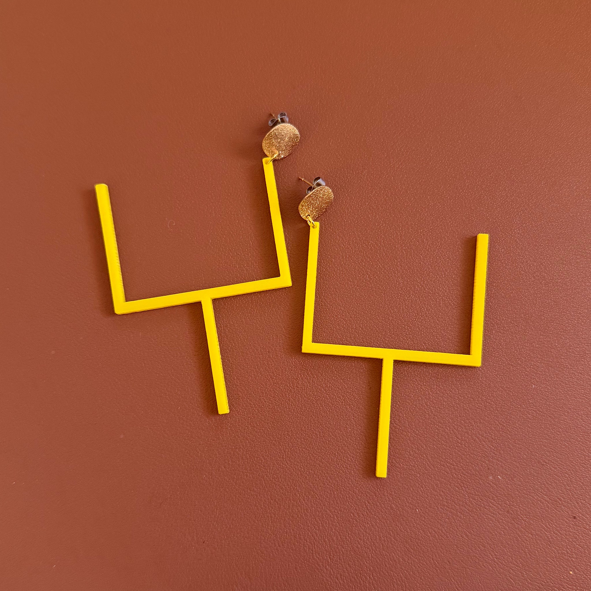 This listing is for one set or pair of football goal post dangle earrings in yellow.